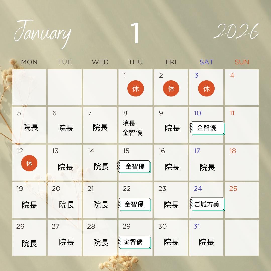 12月の木曜日(12月11日、18日、25日)は、金智優先生と院長による2診体制での診療となります。